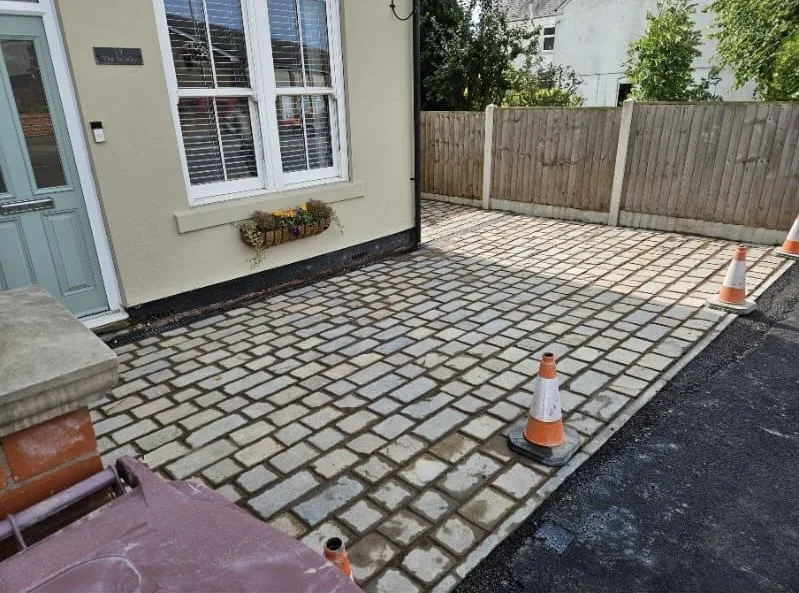 We had the pleasure of installing these beautiful buff tumbled cobble sets for a stunning driveway, completed with a durable, neutral Rompox D1 resin jointing, ensuring a premium, long-lasting finish.